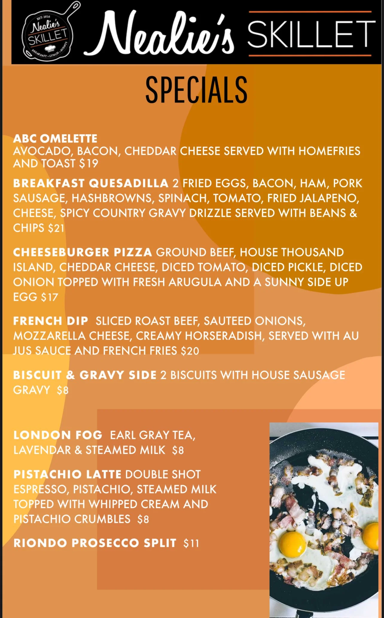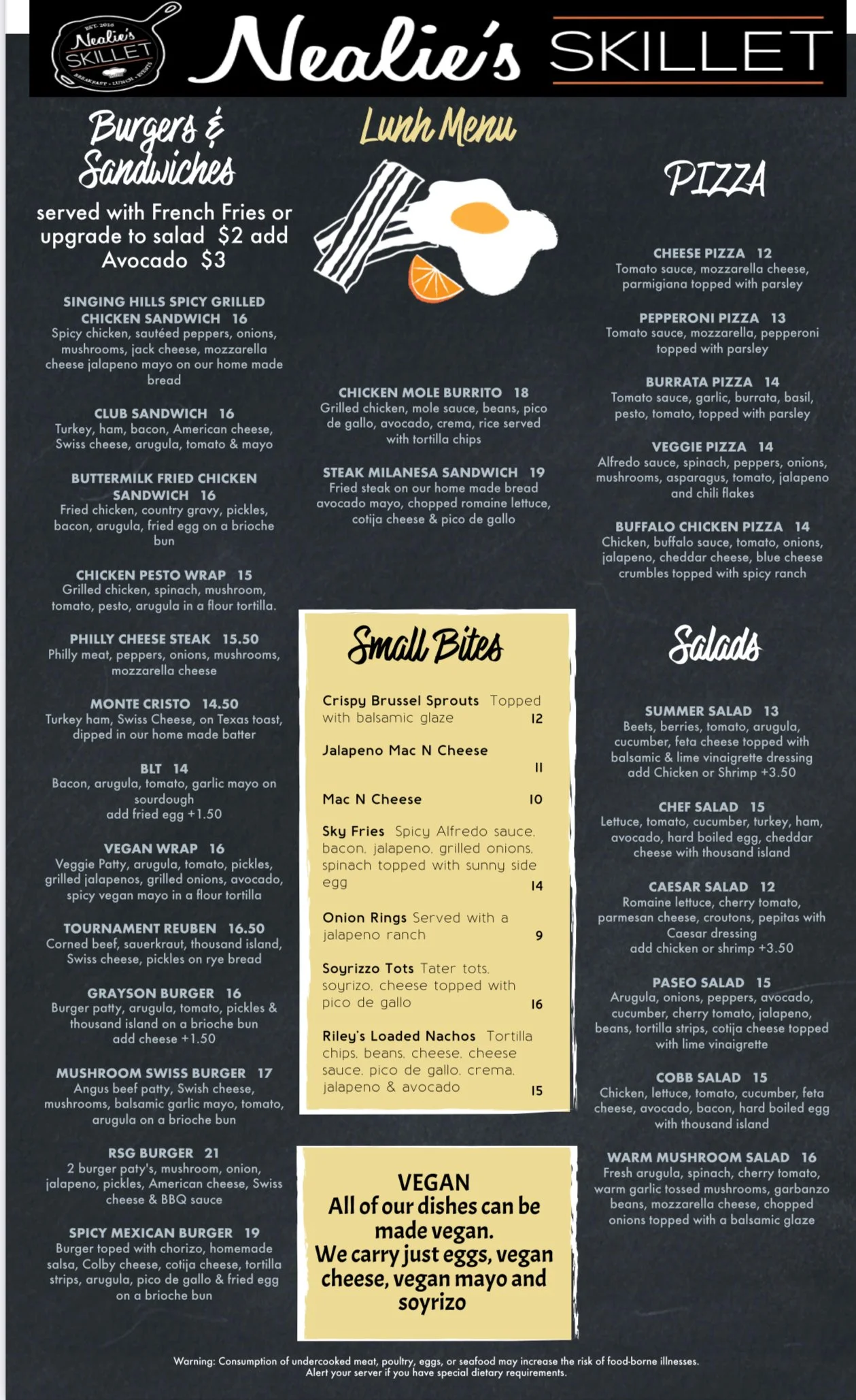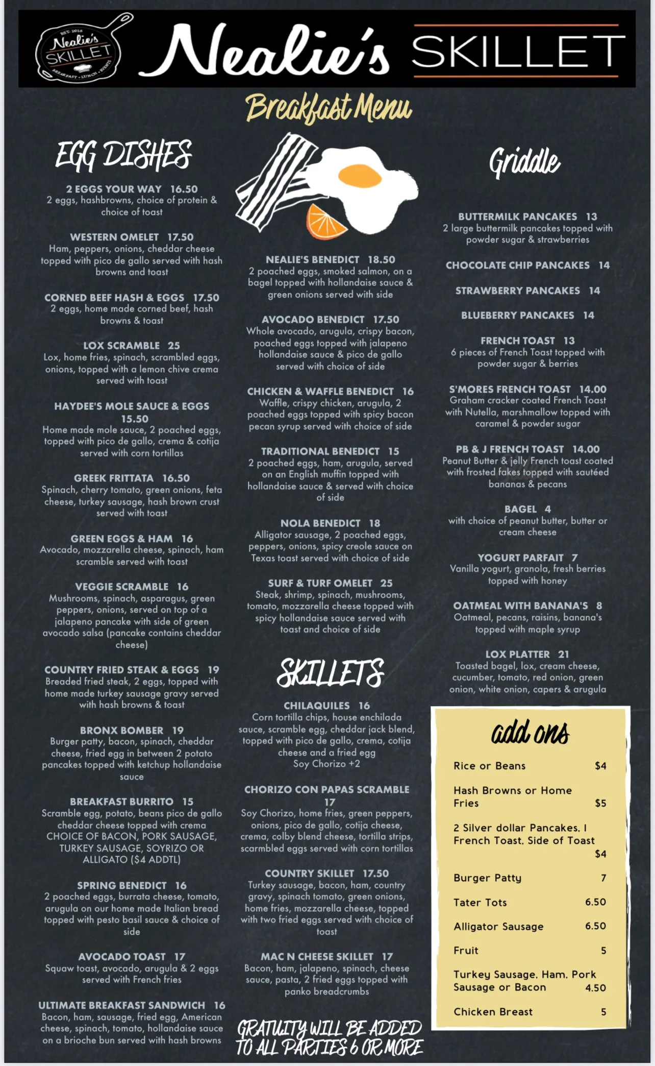 Chilaquiles 1/2 Tray - Homemade red salsa, scrambled egg, soy chorizo,corn tortilla chips, pico de gallo, cotija cheese, Colby cheese, crema topped with 4 fried eggs - $28.00